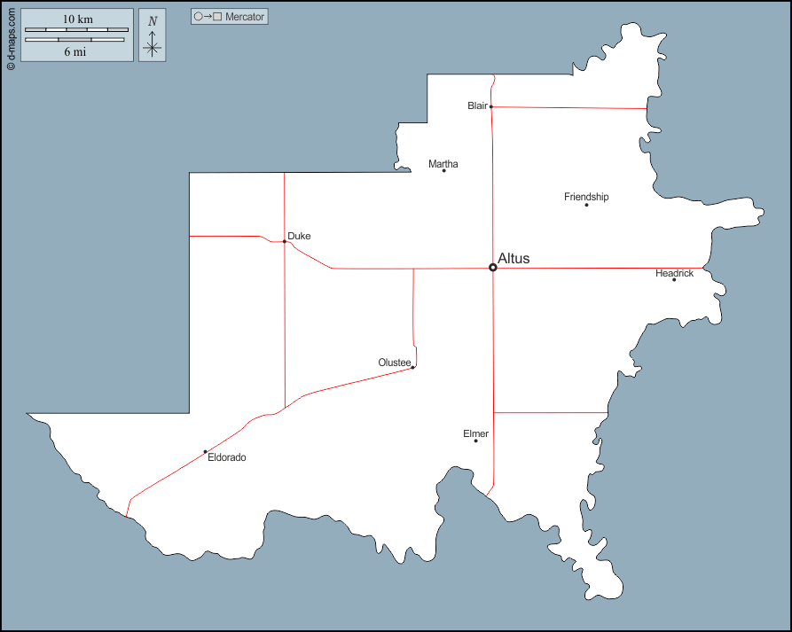 d-maps > संयुक्त राज्य > ओकलाहोमा > जैक्सन काउंटी > बाह्यरेखा, मुख्य शहरों, सड़कों, नाम