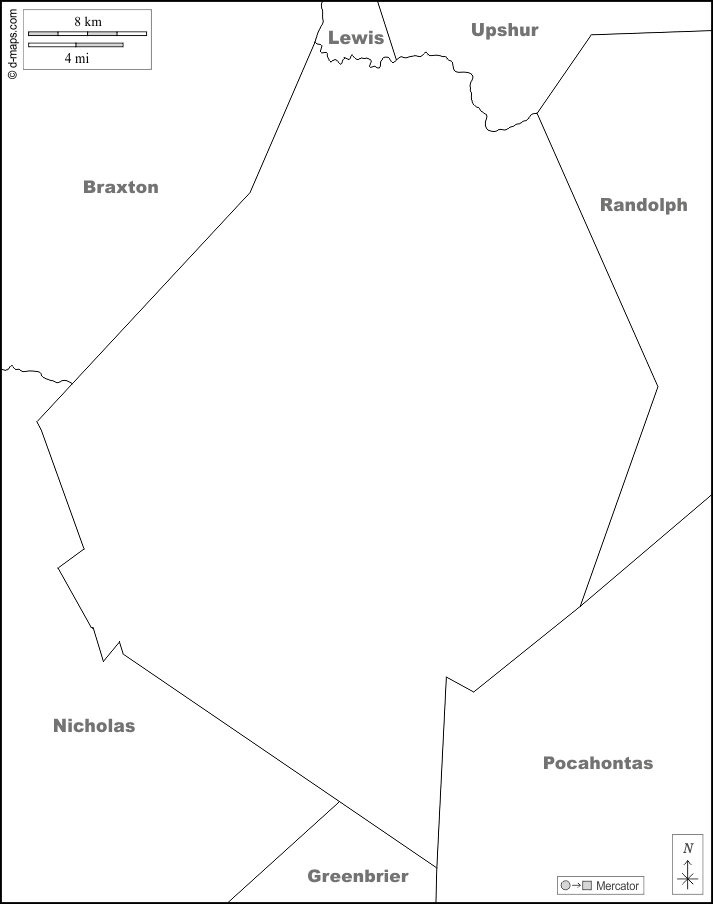 d-maps > संयुक्त राज्य > वेस्ट वर्जीनिया > वेबस्टर काउंटी > सीमाओं, नाम, सफेद