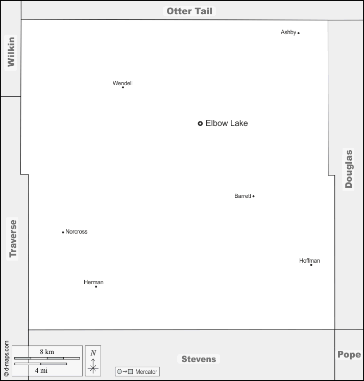 d-maps > संयुक्त राज्य > मिनेसोटा > ग्रांट काउंटी > सीमाओं, मुख्य शहरों, नाम