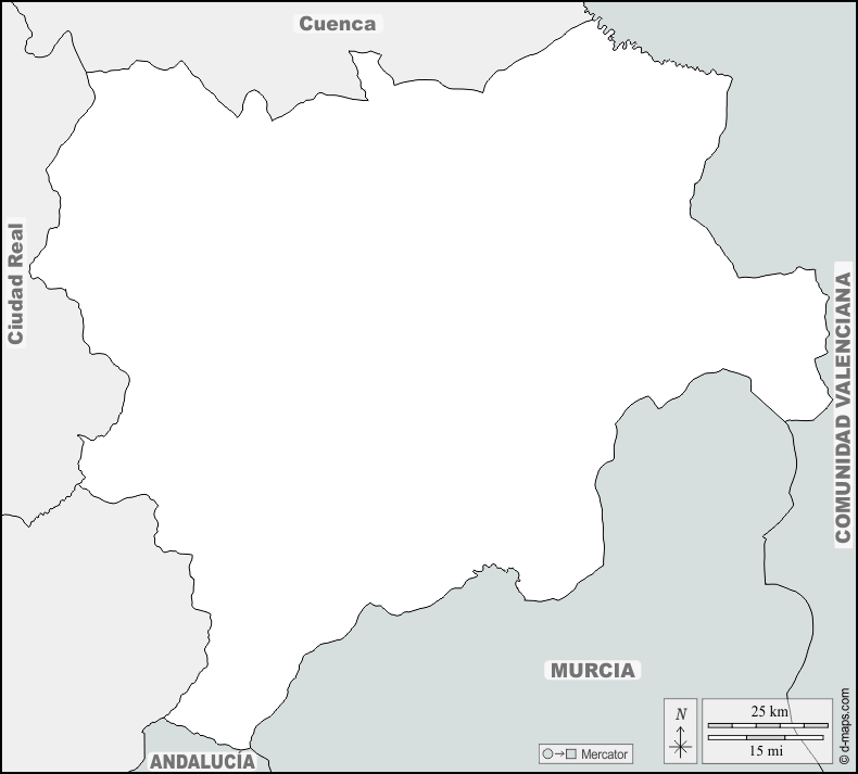 d-maps > यूरोप > स्पेन > अल्बासेटे > सीमाओं, नाम
