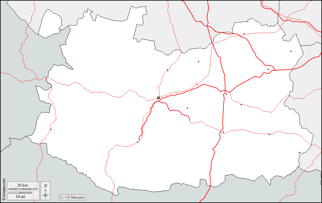 d-maps > यूरोप > स्पेन > सिदाद रीयल > सीमाओं, मुख्य शहरों, सड़कों