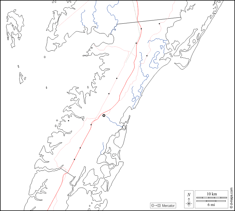 d-maps > संयुक्त राज्य > वर्जीनिया > एक्कोमैक काउंटी > सीमाओं, जल-सर्वेक्षण, मुख्य शहरों, सड़कों, सफेद