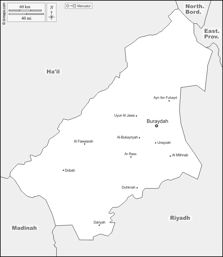 d-maps > एशिया > सऊदी अरब > अल-कासिम प्रांत > सीमाओं, मुख्य शहरों, नाम