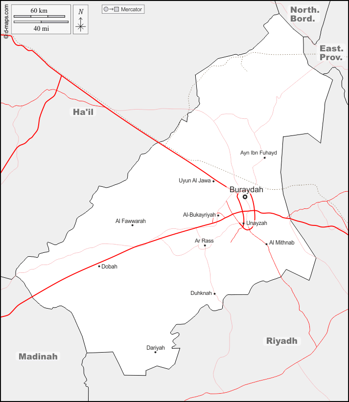 d-maps > एशिया > सऊदी अरब > अल-कासिम प्रांत > सीमाओं, मुख्य शहरों, सड़कों, नाम