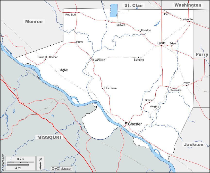 d-maps > संयुक्त राज्य > इलिनॉय > रैंडोल्फ़ काउंटी > सीमाओं, जल-सर्वेक्षण, मुख्य शहरों, सड़कों, नाम