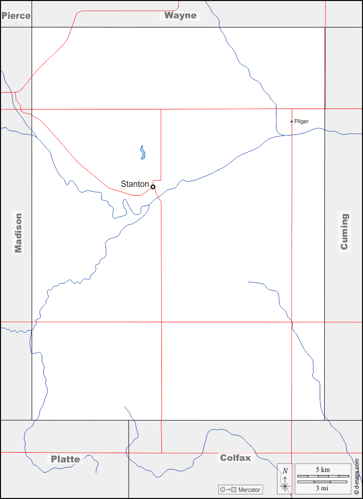 d-maps > संयुक्त राज्य > नेब्रास्का > स्टैंटन काउंटी > सीमाओं, जल-सर्वेक्षण, मुख्य शहरों, सड़कों, नाम