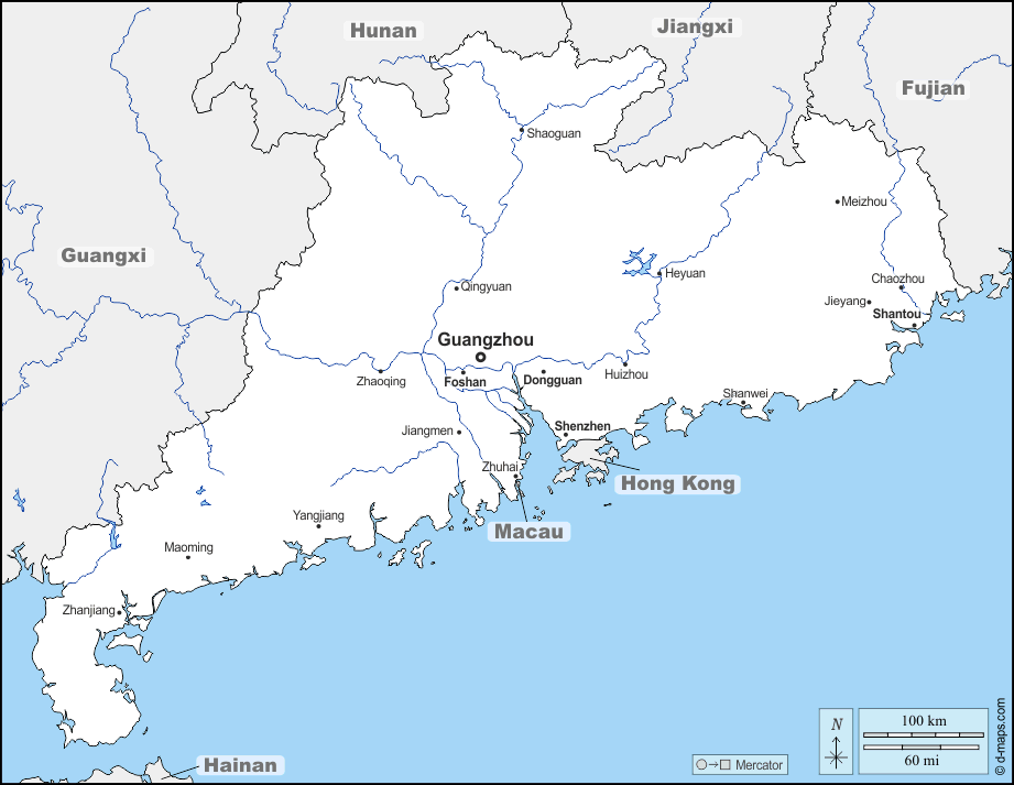d-maps > एशिया > चीनी जनवादी गणराज्य > गुआंग्डोंग > सीमाओं, जल-सर्वेक्षण, मुख्य शहरों, नाम