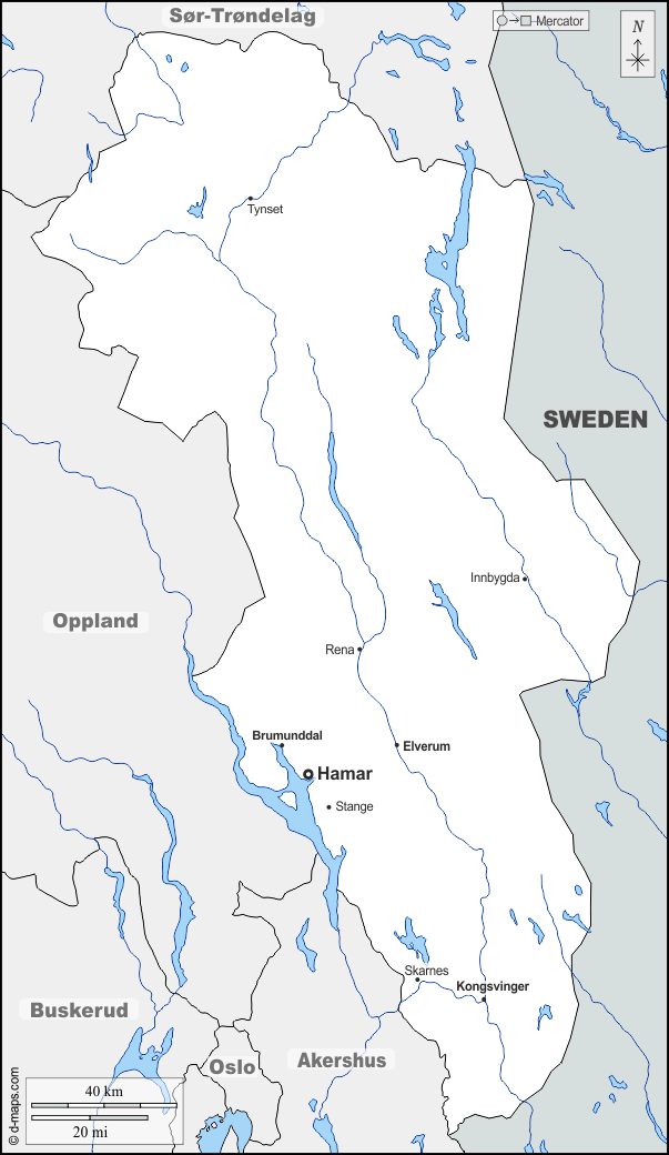 d-maps > यूरोप > नॉर्वे > हेडेमार्क > सीमाओं, जल-सर्वेक्षण, मुख्य शहरों, नाम