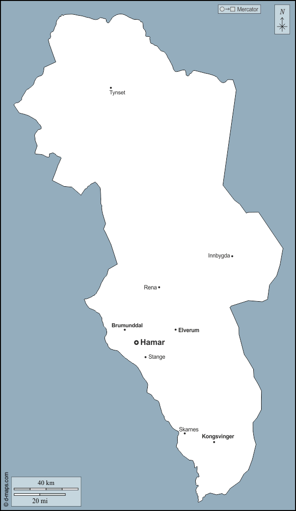 d-maps > यूरोप > नॉर्वे > हेडेमार्क > बाह्यरेखा, मुख्य शहरों, नाम