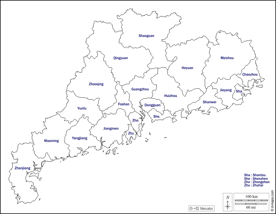 d-maps > एशिया > चीनी जनवादी गणराज्य > गुआंग्डोंग > बाह्यरेखा, जनपदों, नाम, सफेद