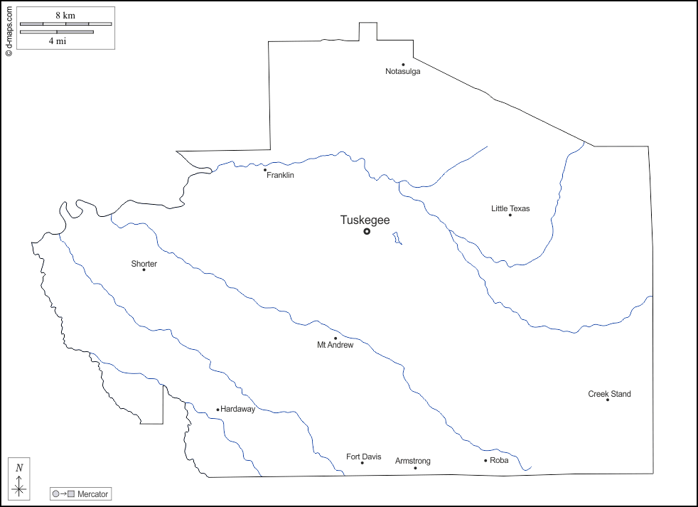 d-maps > संयुक्त राज्य > अलबामा > मैकॉन काउंटी > बाह्यरेखा, जल-सर्वेक्षण, मुख्य शहरों, नाम, सफेद