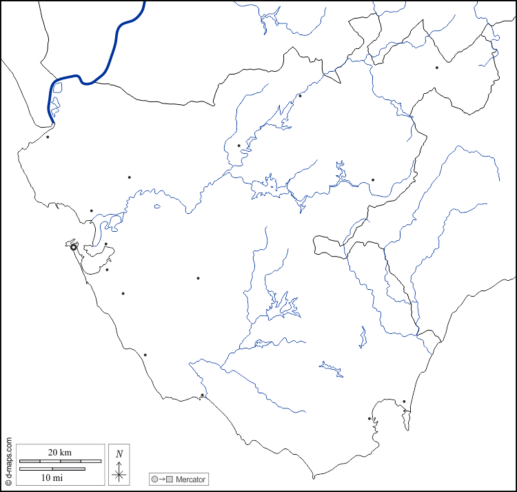 d-maps > यूरोप > स्पेन > कैडिज़ > सीमाओं, जल-सर्वेक्षण, मुख्य शहरों, सफेद