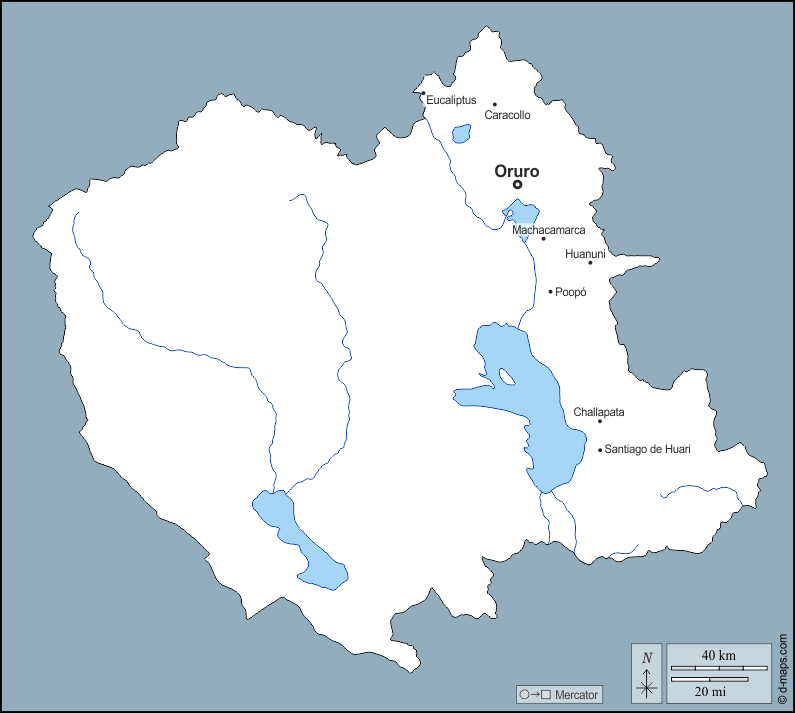 d-maps > महाअमेरिका > बोलीविया > ओरुरो > बाह्यरेखा, जल-सर्वेक्षण, मुख्य शहरों, नाम
