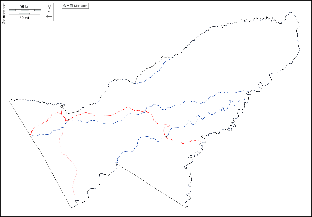 d-maps > महाअमेरिका > बोलीविया > पांडो > बाह्यरेखा, जल-सर्वेक्षण, मुख्य शहरों, सड़कों, सफेद