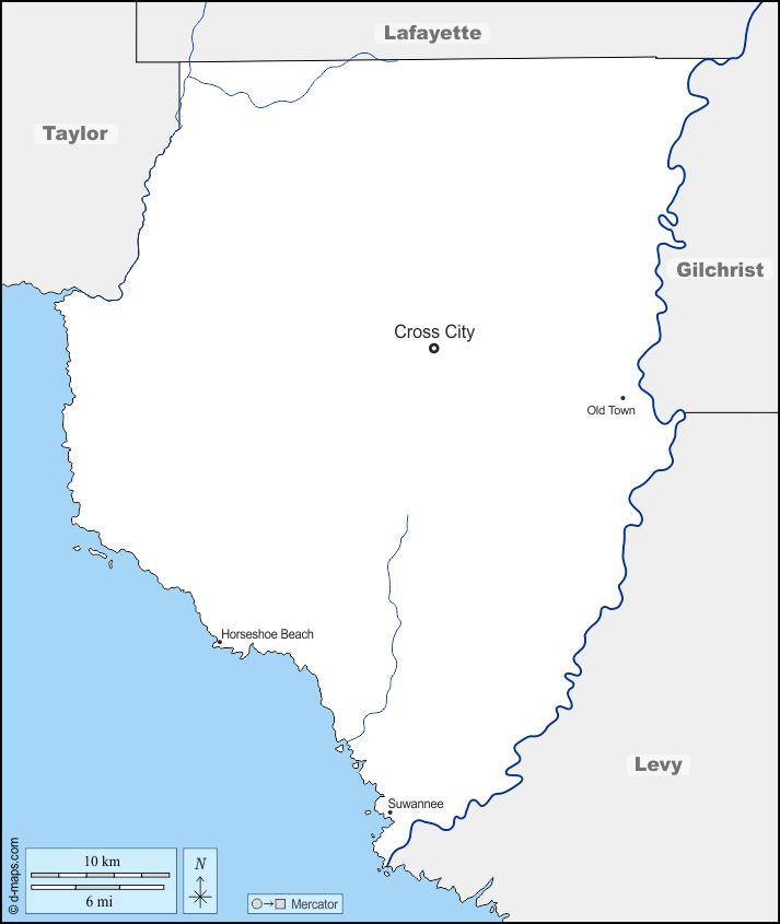 d-maps > संयुक्त राज्य > फ्लोरिडा > डिक्सी काउंटी > सीमाओं, जल-सर्वेक्षण, मुख्य शहरों, नाम