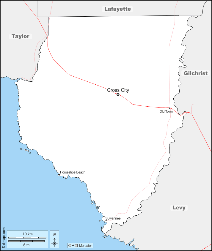 d-maps > संयुक्त राज्य > फ्लोरिडा > डिक्सी काउंटी > सीमाओं, मुख्य शहरों, सड़कों, नाम