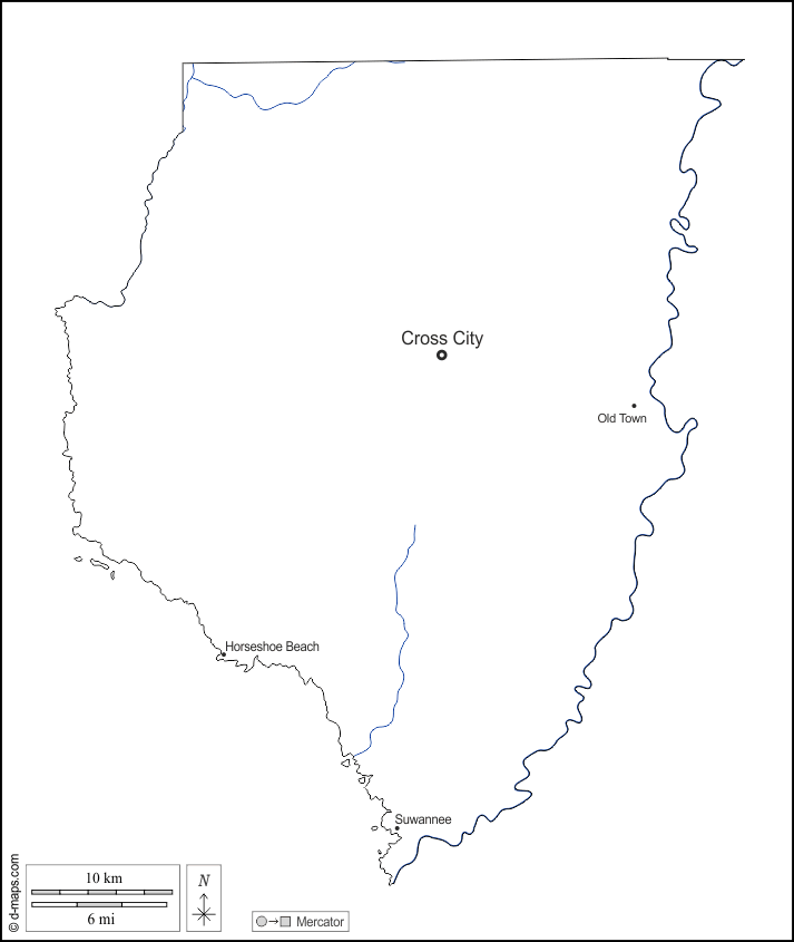 d-maps > संयुक्त राज्य > फ्लोरिडा > डिक्सी काउंटी > बाह्यरेखा, जल-सर्वेक्षण, मुख्य शहरों, नाम, सफेद