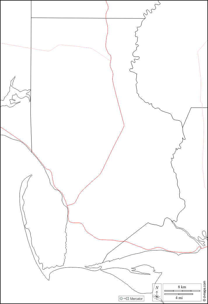 d-maps > संयुक्त राज्य > फ्लोरिडा > गल्फ काउंटी > सीमाओं, सड़कों, सफेद