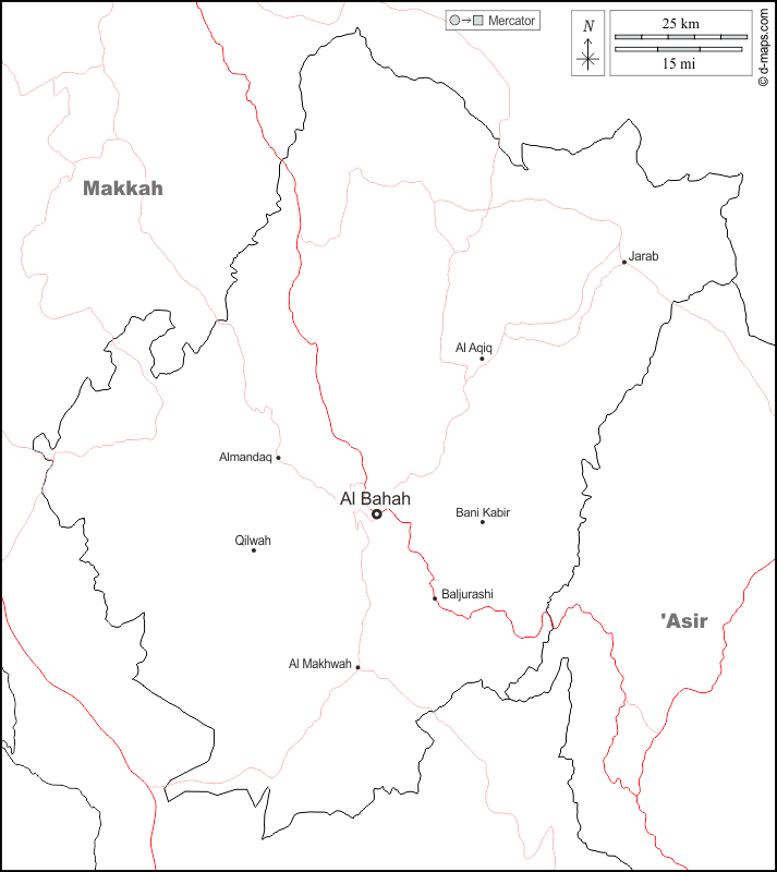 d-maps > एशिया > सऊदी अरब > अल-बहा प्रांत > सीमाओं, मुख्य शहरों, सड़कों, नाम, सफेद
