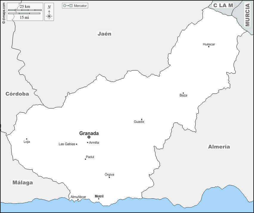 d-maps > यूरोप > स्पेन > ग्रेनेडा > सीमाओं, मुख्य शहरों, नाम