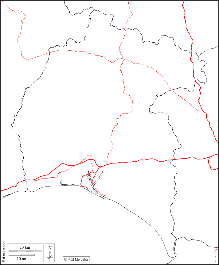 d-maps > यूरोप > स्पेन > ह्यूएलवा > सीमाओं, सड़कों, सफेद