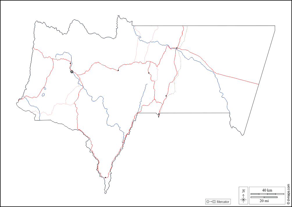 d-maps > महाअमेरिका > बोलीविया > तरीजा > बाह्यरेखा, जल-सर्वेक्षण, मुख्य शहरों, सड़कों, सफेद