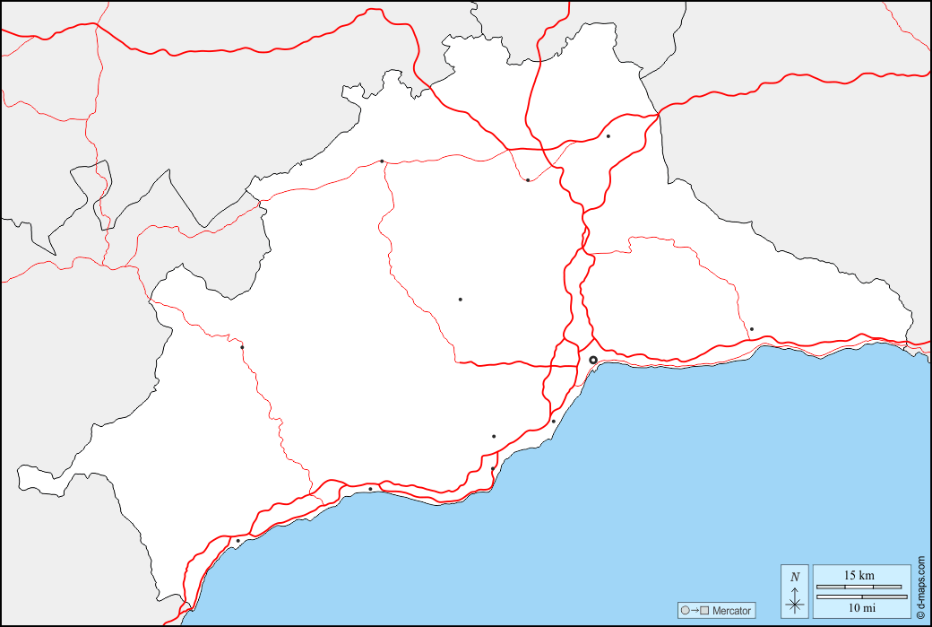 d-maps > यूरोप > स्पेन > मैलेगा > सीमाओं, मुख्य शहरों, सड़कों