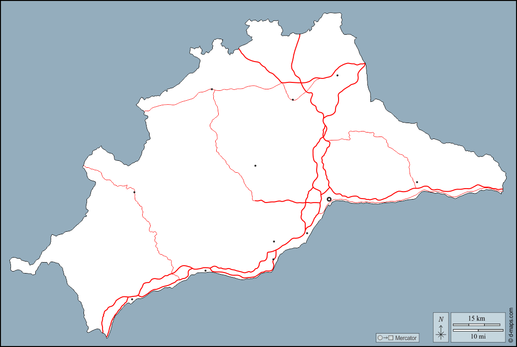 d-maps > यूरोप > स्पेन > मैलेगा > बाह्यरेखा, मुख्य शहरों, सड़कों