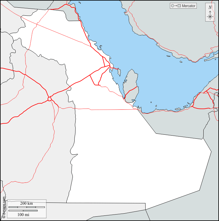 d-maps > एशिया > सऊदी अरब > पूर्वी प्रांत > सीमाओं, सड़कों