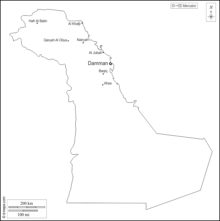 d-maps > एशिया > सऊदी अरब > पूर्वी प्रांत > बाह्यरेखा, मुख्य शहरों, नाम, सफेद