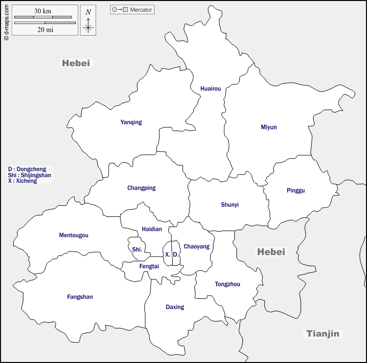 d-maps > एशिया > चीनी जनवादी गणराज्य > बीजिंग > सीमाओं, जनपदों, नाम
