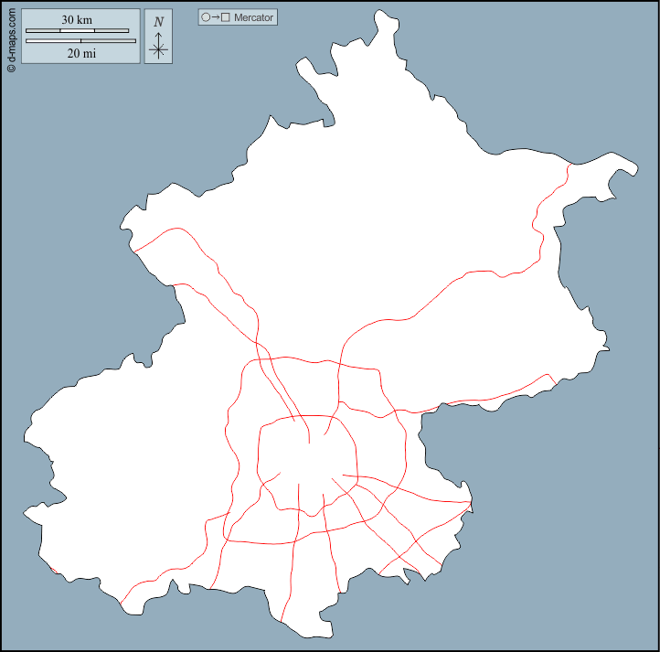 d-maps > एशिया > चीनी जनवादी गणराज्य > बीजिंग > बाह्यरेखा, सड़कों