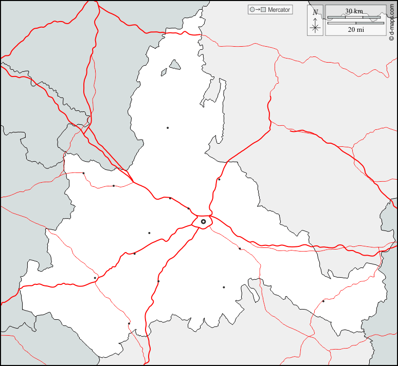 d-maps > यूरोप > स्पेन > ज़रागोज़ा > सीमाओं, मुख्य शहरों, सड़कों