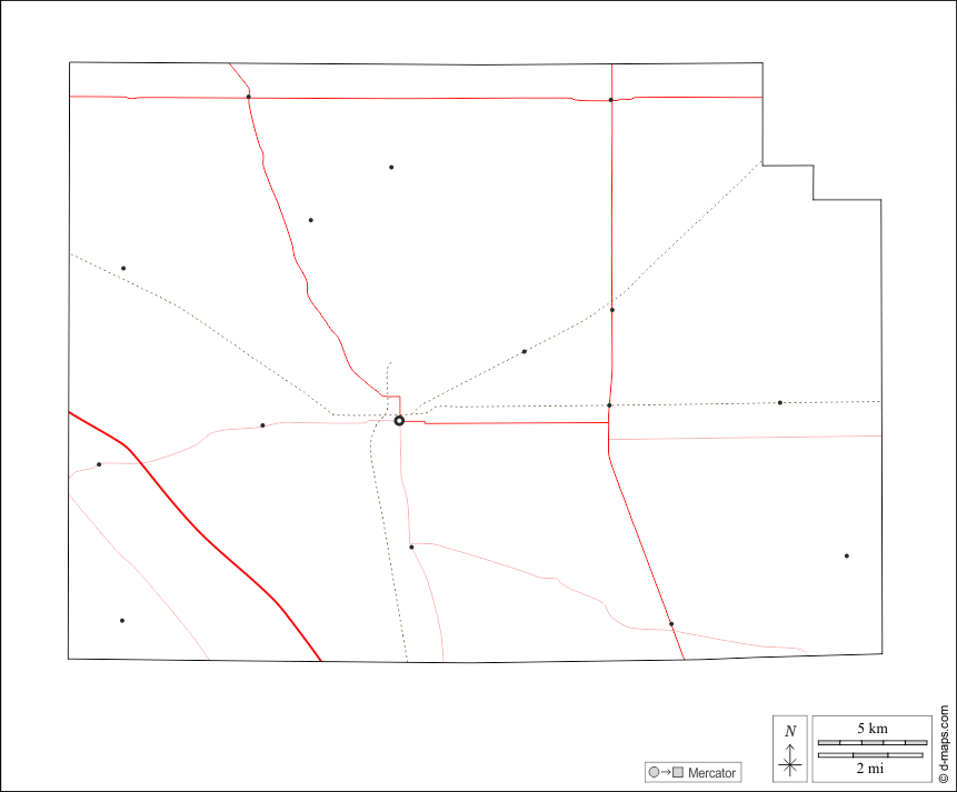 d-maps > संयुक्त राज्य > इंडियाना > क्लिंटन काउंटी > बाह्यरेखा, मुख्य शहरों, सड़कों, सफेद