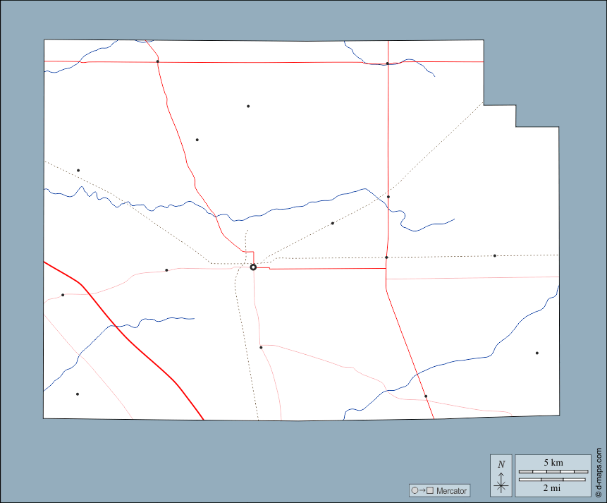 d-maps > संयुक्त राज्य > इंडियाना > क्लिंटन काउंटी > बाह्यरेखा, जल-सर्वेक्षण, मुख्य शहरों, सड़कों