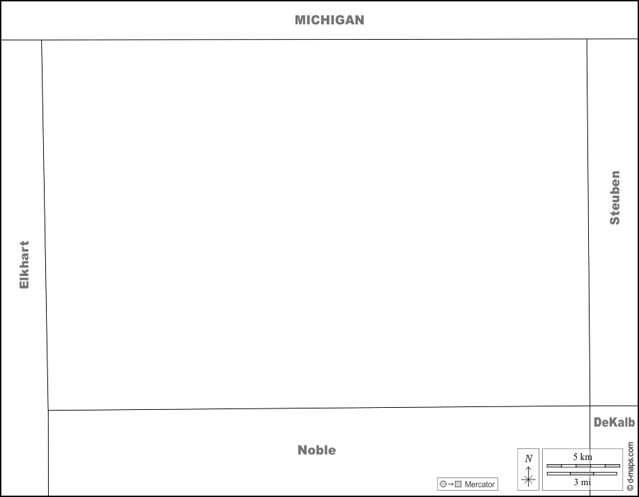 d-maps > संयुक्त राज्य > इंडियाना > लाग्रैंज काउंटी > सीमाओं, नाम, सफेद