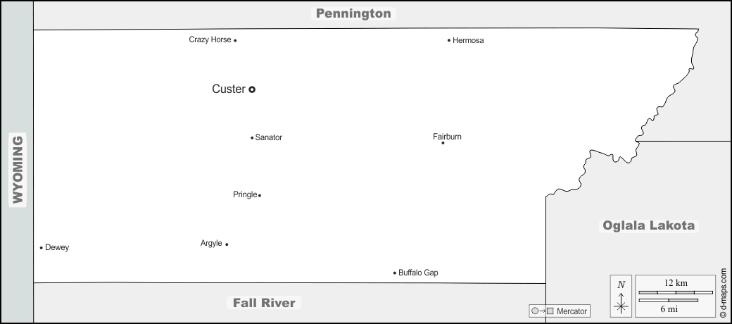 d-maps > संयुक्त राज्य > साउथ डकोटा > कस्टर > सीमाओं, मुख्य शहरों, नाम