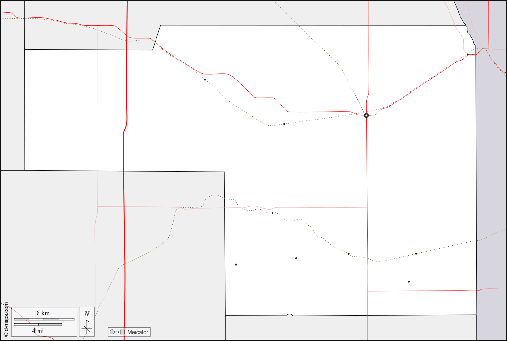 d-maps > संयुक्त राज्य > साउथ डकोटा > अनुदान > सीमाओं, मुख्य शहरों, सड़कों