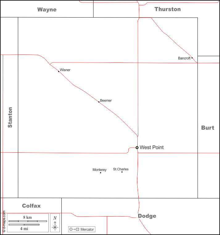 d-maps > संयुक्त राज्य > नेब्रास्का > उत्तर पूर्व नेब्रास्का > सीमाओं, मुख्य शहरों, सड़कों, नाम, सफेद