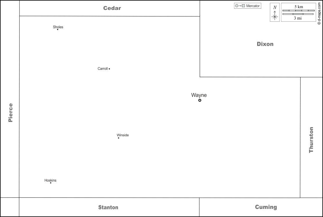 d-maps > संयुक्त राज्य > नेब्रास्का > वेन > सीमाओं, मुख्य शहरों, नाम, सफेद