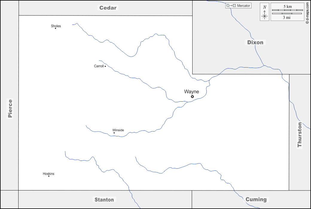 d-maps > संयुक्त राज्य > नेब्रास्का > वेन > सीमाओं, जल-सर्वेक्षण, मुख्य शहरों, नाम