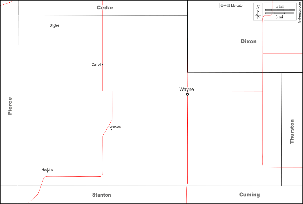 d-maps > संयुक्त राज्य > नेब्रास्का > वेन > सीमाओं, मुख्य शहरों, सड़कों, नाम, सफेद