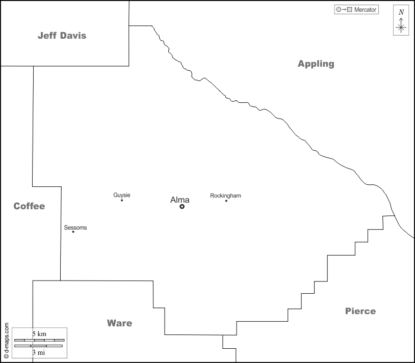 d-maps > संयुक्त राज्य > जॉर्जिया > बेकन > सीमाओं, मुख्य शहरों, नाम, सफेद