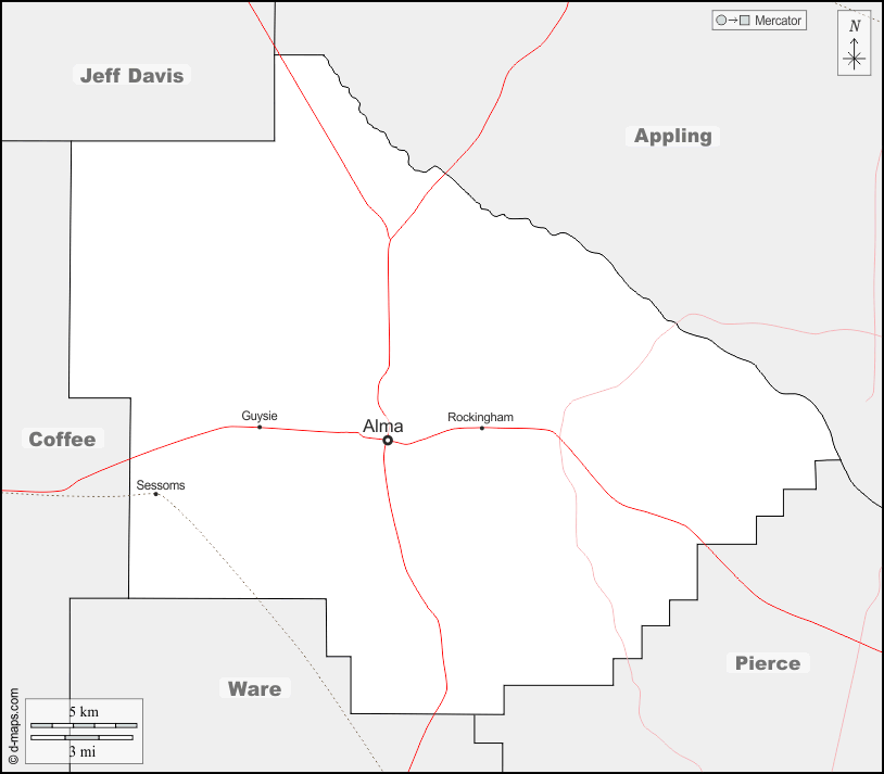 d-maps > संयुक्त राज्य > जॉर्जिया > बेकन > सीमाओं, मुख्य शहरों, सड़कों, नाम