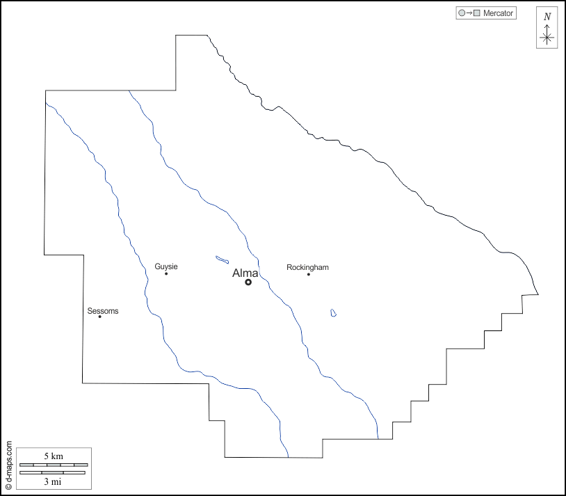 d-maps > संयुक्त राज्य > जॉर्जिया > बेकन > बाह्यरेखा, जल-सर्वेक्षण, मुख्य शहरों, नाम, सफेद