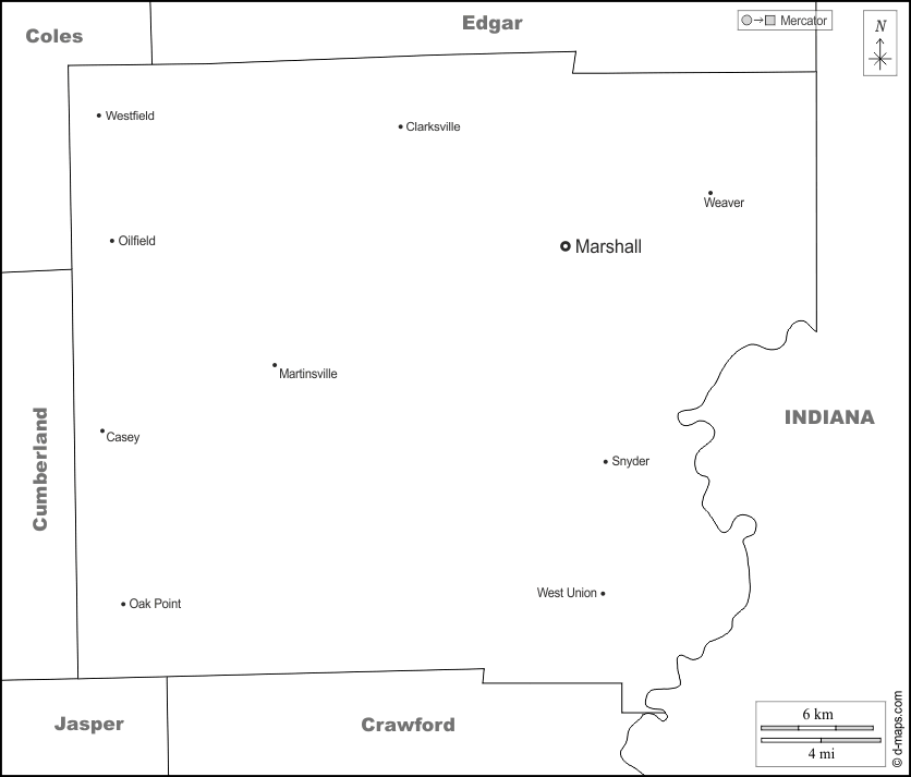 d-maps > संयुक्त राज्य > इलिनॉय > क्लार्क > सीमाओं, मुख्य शहरों, नाम, सफेद