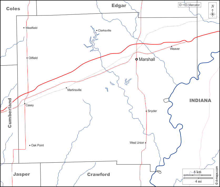 d-maps > संयुक्त राज्य > इलिनॉय > क्लार्क > सीमाओं, जल-सर्वेक्षण, मुख्य शहरों, सड़कों, नाम, सफेद