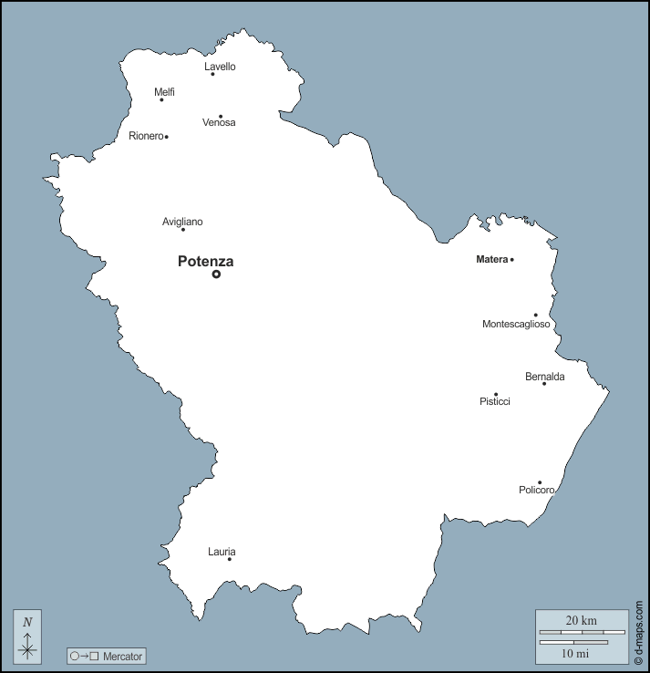 d-maps > यूरोप > इटली > बाज़िलीकाता > बाह्यरेखा, मुख्य शहरों, नाम