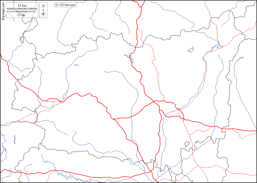 d-maps > यूरोप > स्पेन > शेर > सीमाओं, जल-सर्वेक्षण, सड़कों, सफेद