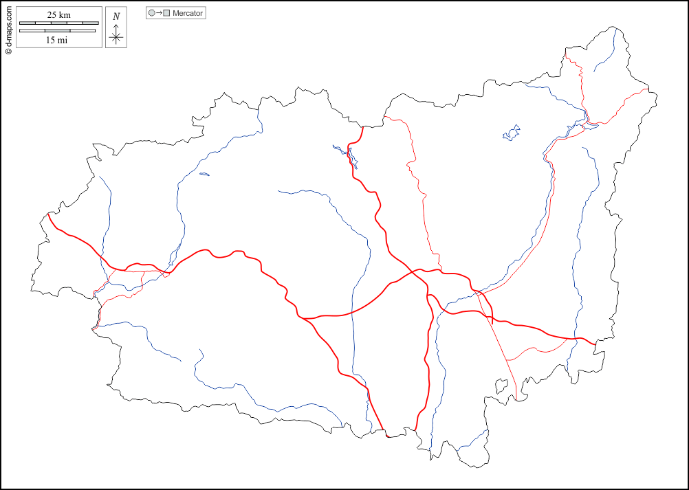 d-maps > यूरोप > स्पेन > शेर > बाह्यरेखा, जल-सर्वेक्षण, सड़कों, सफेद